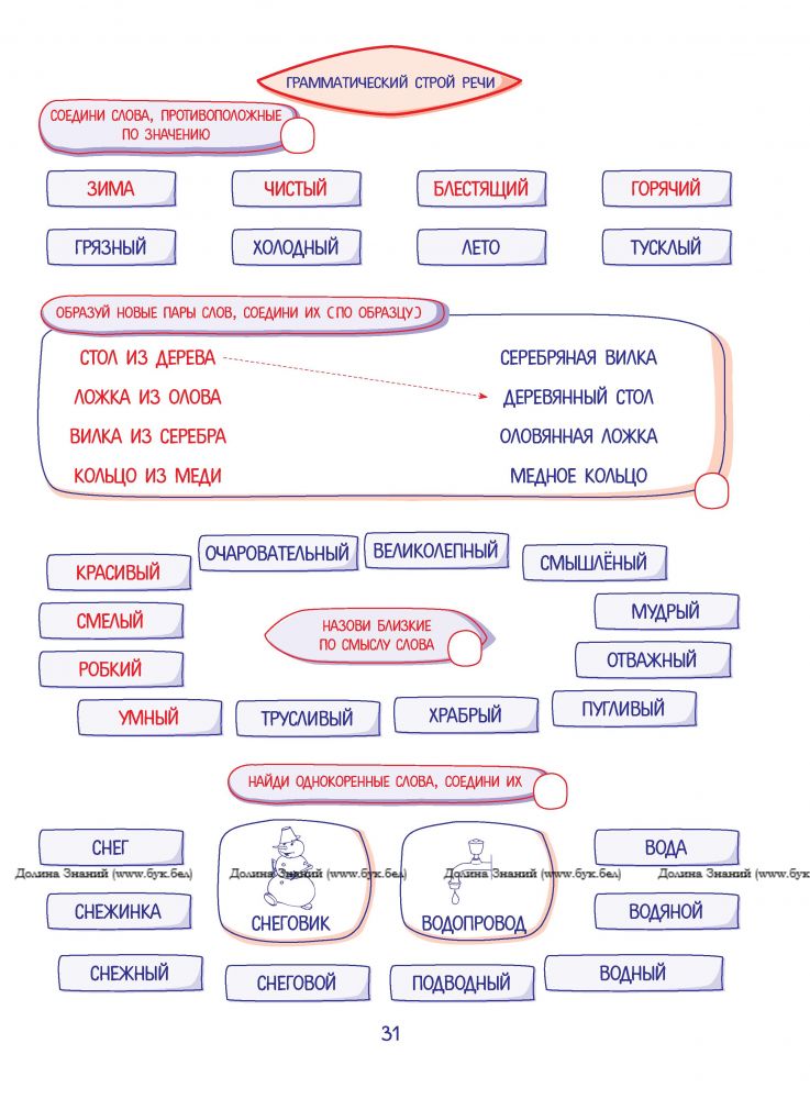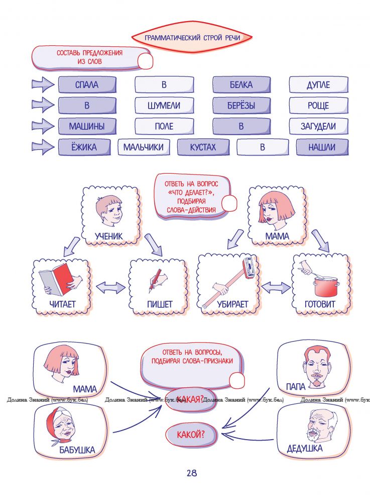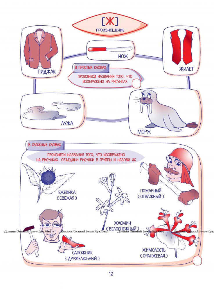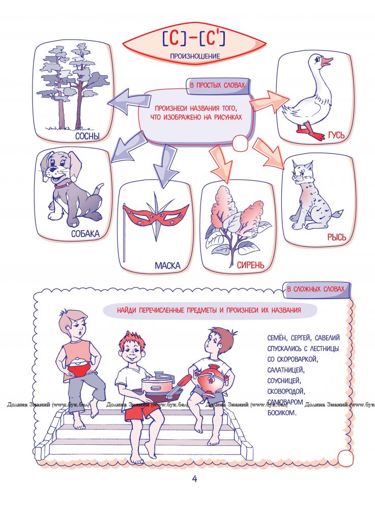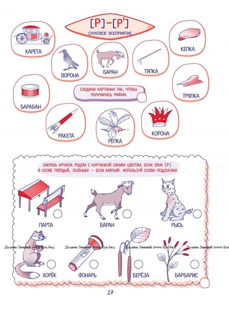 Иллюстрированные игры-задания способствуют формированию правильного звукопроизношения, расширению словарного запаса, развитию фонематического восприятия, речевого внимания, памяти, мышления. Тестирование умений различать твёрдые и мягкие согласные, похожие по звучанию слова, определять место заданного звука в слове, делить слова на слоги, подбирать рифмы поможет определить уровень речевого развития вашего ребёнка.