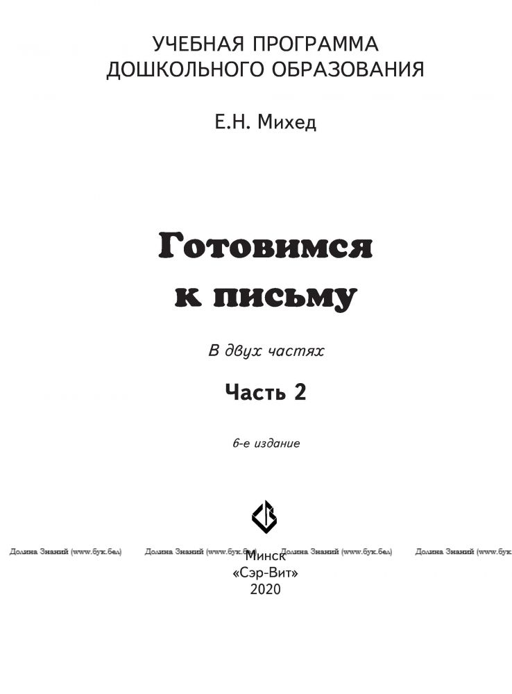 Готовимся к письму. В 2 ч. Ч. 1 / Е. Н. Михед. – 6-е изд. – Минск : Сэр-Вит, 2020. – 28 с. – (Учебная программа дошкольного образования).