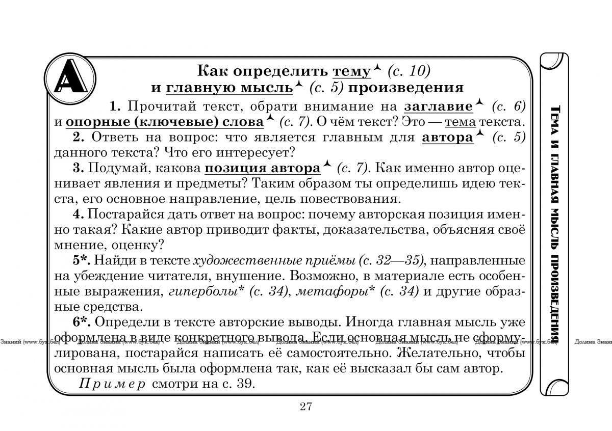 В пособие включен материал в виде простых для восприятия памяток, который позволит ученику полноценно работать с текстом, проводить его анализ и интерпретировать, определять жанр произведения. Приведены алгоритмы по определению темы, главной мысли, композиции текста, по составлению характеристики героя, по составлению плана, по подготовке пересказа, по работе с различными жанрами в соответствии с программой начальной школы. Даны примеры, позволяющие ребенку понять, как работать с этими алгоритмами. В издание включен словарь читателя, который поможет ученику найти доступные и четкие определения различных терминов, встречающихся в тексте, выстроить свой ответ для составления характеристики героя и описания настроения или высказывания своего отношения к прочитанному. Адресуется ученикам начальных классов, учителям, а также родителям.