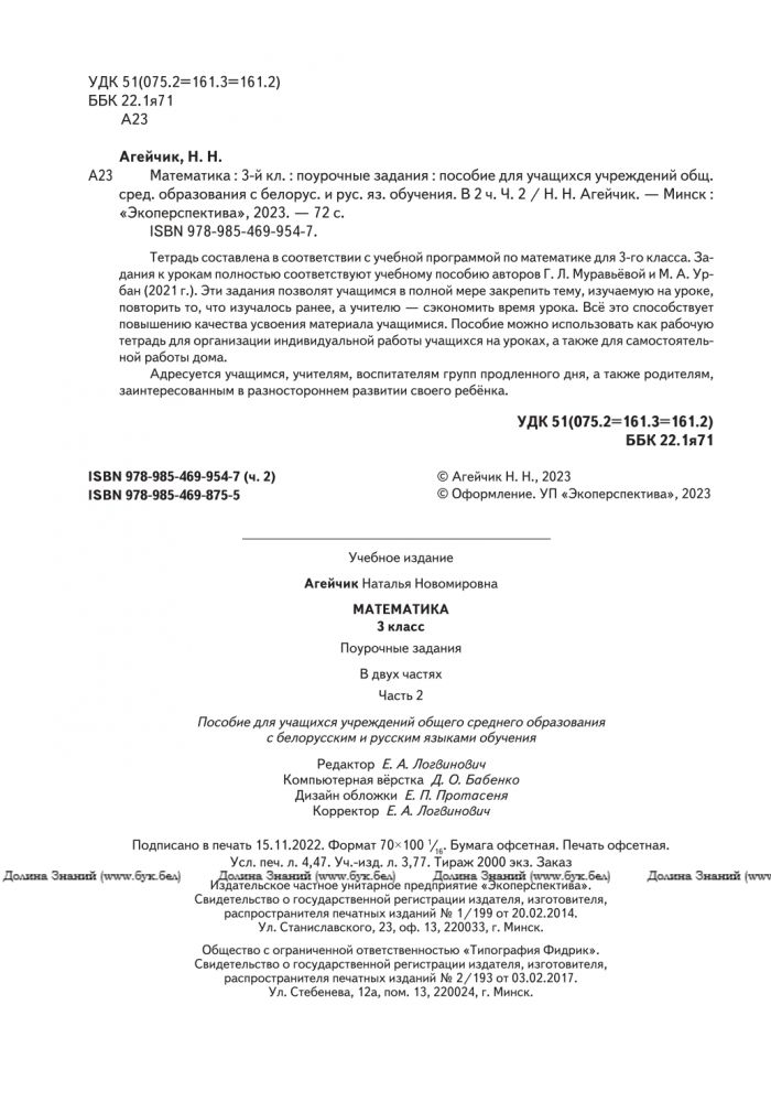 Математика. Поурочные задания. 3 класс. 2 часть (Агейчик)