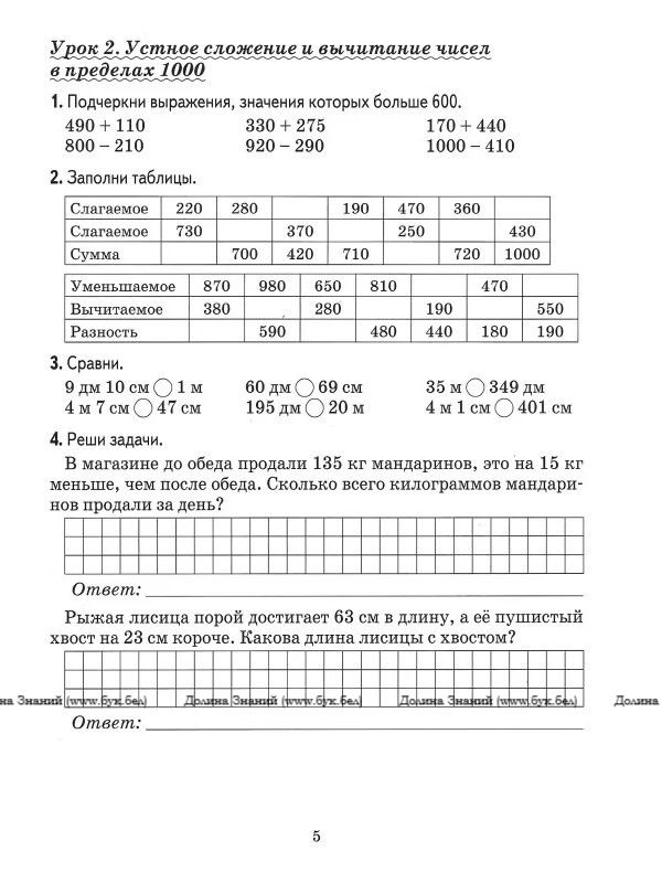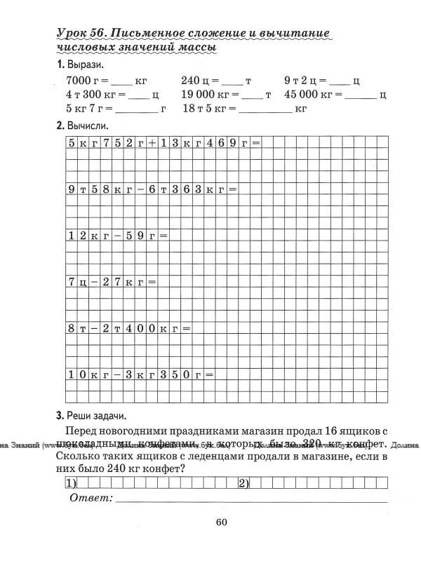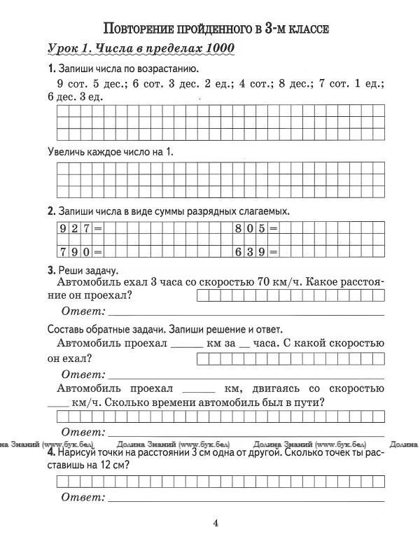 Математика.Поурочные задания. 4 класс. 1часть.