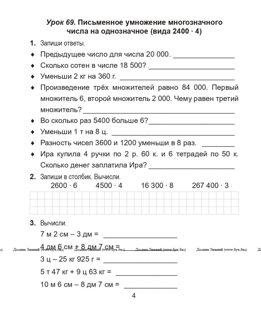 ШП. Математика. Поурочные задания. 4 класс. Часть 2.