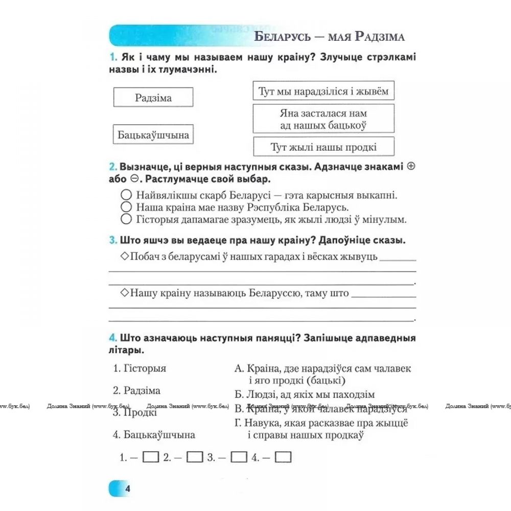 МАЯ РАДЗІМА БЕЛАРУСЬ.4 клас. ТРЭНАЖОР ДЛЯ ЗАМАЦАВАННЯ ВЕДАЎ.