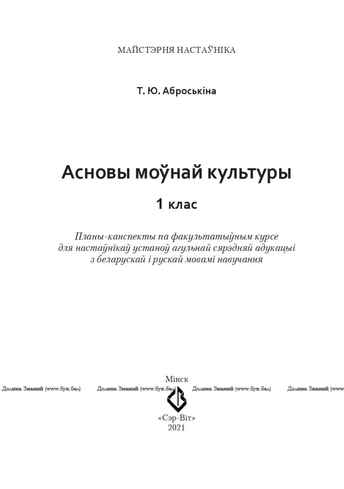 Асновы моўнай культуры : 1-ы клас : планы-канспекты па факультатыўным курсе для настаўнікаў устаноў агульнай сярэдняй адукацыі з беларус. і рус. мовамі навучання