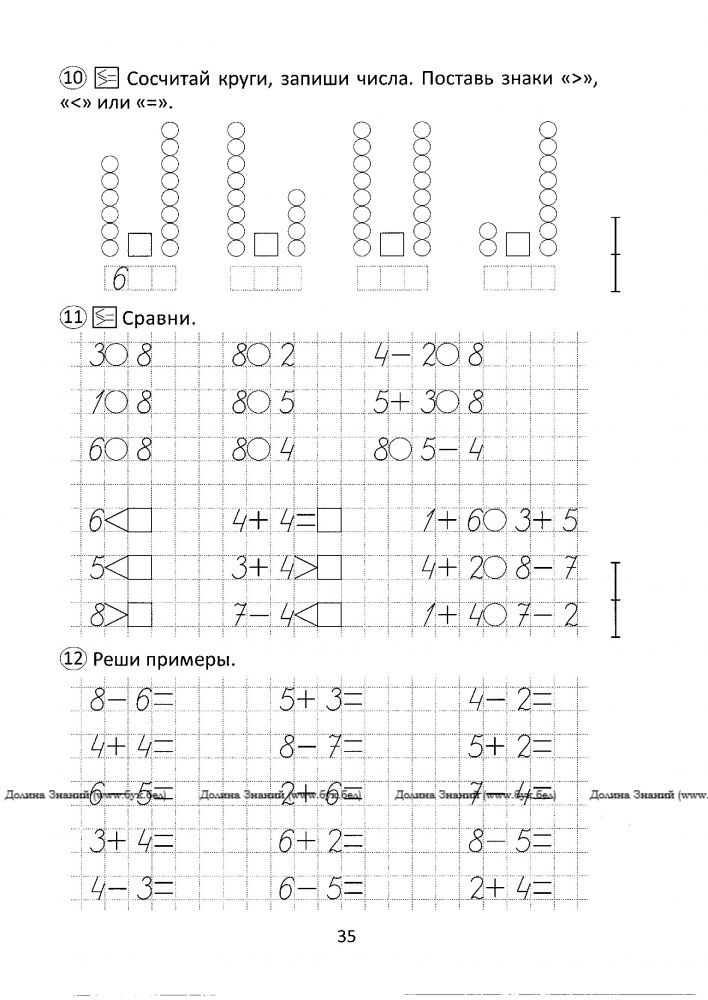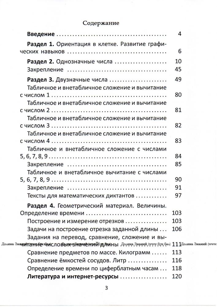 Пособие представляет собой тренажер для формирования навыков правильного написания цифр и математических знаков, отработки базовых умений и вычислительных навыков и навыков работы с величинами и геометрическим материалом в 1-м классе. Тетрадь структурирована в соответствии с порядком изучения тем по программе и календарно-тематическим планированием; будет способствовать закреплению изученного и пройденного на уроках математики учебного материала (за исключением навыков решения задач). Задания носят занимательный характер, реализован принцип постепенного усложнения. После каждого задания на полях расположен объект для самооценки, который поможет ребенку учиться формировать свое отношение к выполненному заданию и будет способствовать формированию адекватной самооценки. Для оказания помощи учащимся родителям и педагогам дополнительно предложены алгоритмы написания цифр.