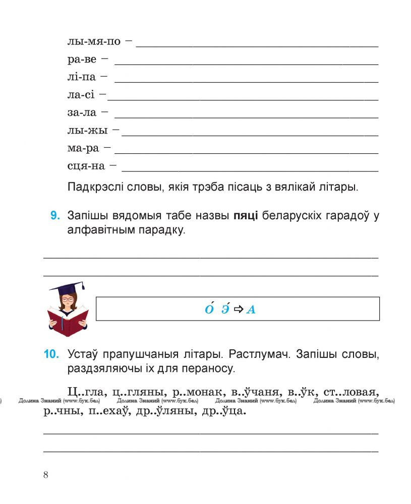 Рабочы сшытак па беларускай мове для трэцяга класа падрыхтаваны ў адпаведнасці з патрабаваннямі вучэбнай праграмы. Матэрыял, прапанаваны ў сшытку, ахоплівае ўсе асноўныя тэмы і будзе спрыяць паспяховаму вывучэнню і лепшаму авалоданню роднай мовай, разуменню яе мілагучнасці і прыгажлсці, пашырэнню лексічнага запасу.Адрасуецца вучням, а таксама бацькам.Рабочы сшытак можа быць карысным настаўнікам для арганізацыі і правядзення адукацыйнага працэсу.