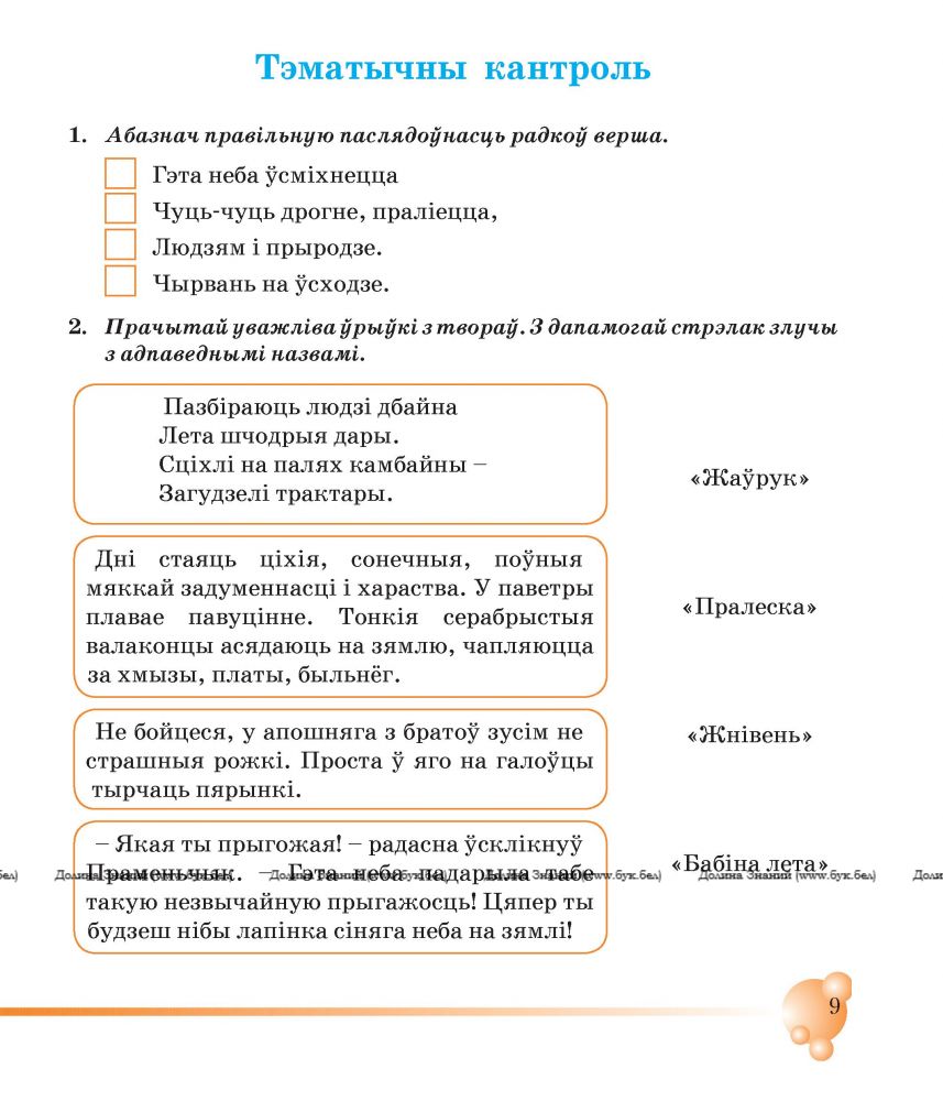 Дапаможнік прызначаны для выкарыстання на вучэбных занятках «Літаратурнае чытанне» ў 4 класе ўстаноў агульнай сярэдняй адукацыі з рускай мовай навучання. Матэрыял накіраваны на фарміраванне навыкаў гаварэння, чытання і развіццё чытацкіх уменняў вучняў.Складзены дапаможнік згодна з патрабаваннямі праграмы. У кожны раздзел уключаны творы беларускіх пісьменнікаў для арганізацыі чытацкай дзейнасці на ўроку, творы для пазакласнага чытання і матэрыял для правядзення тэматычнага кантролю. Адрасуецца вучням. Будзе карысным настаўніку для арганізацыі і правядзення вучэбнага працэсу.