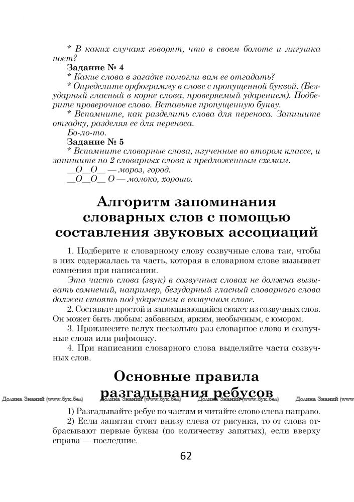 Графические и звуковые ассоциации, толкование слова, этимологическая справка, разнообразные стандартные и занимательные задания (ребусы, кроссворды, магические квадраты, шифровки, рифмовки, и др.) помогут учителю организовать плодотворную и интересную для учащихся работу над словарными словами.