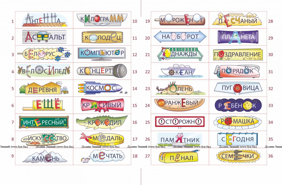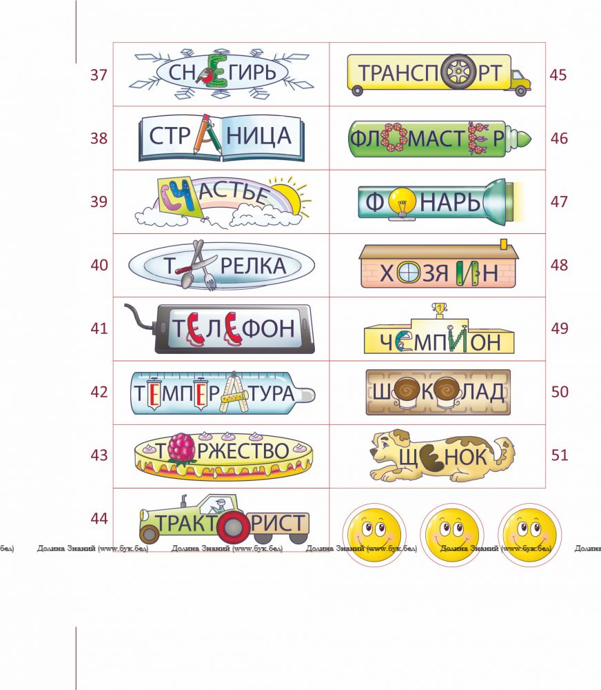 - цветные наклейки с графическими ассоциациями и цветные ребусы ко всем словам;