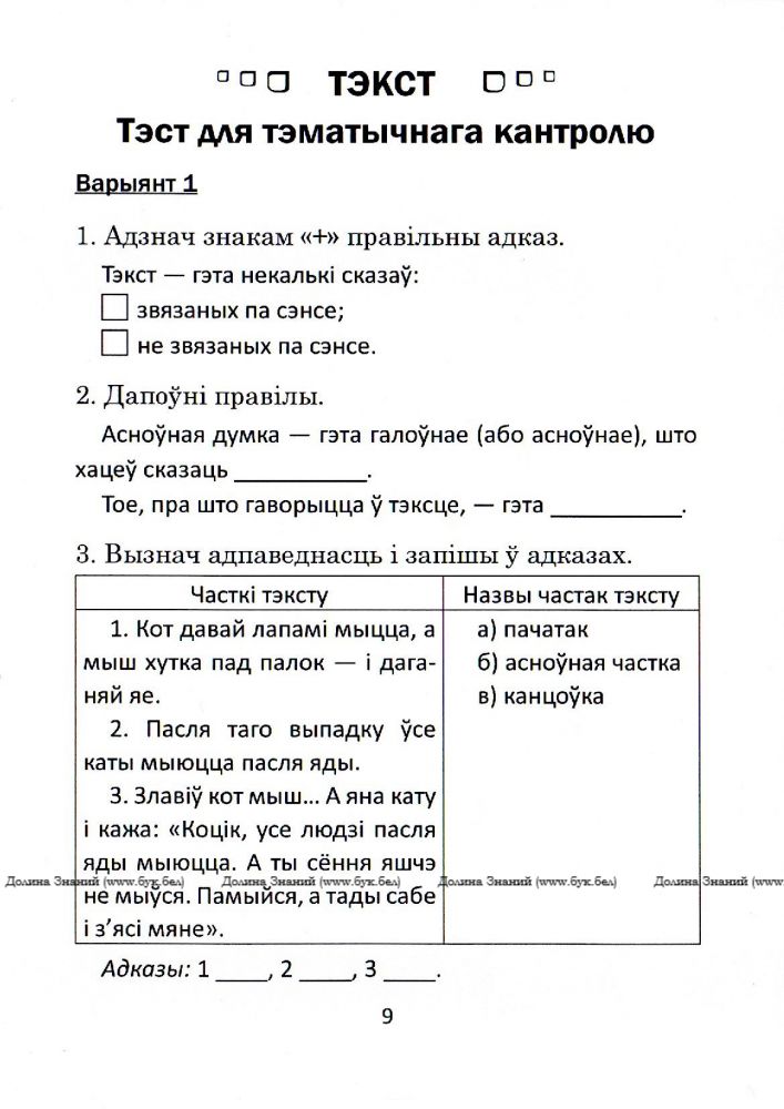 ◆ Заданні ў кожнай тэставай рабоце падабраны такім чынам, каб ацэньваць іх у адпаведнасці з нормамі ацэньвання, зацверджанымі Міністэрствам адукацыі.