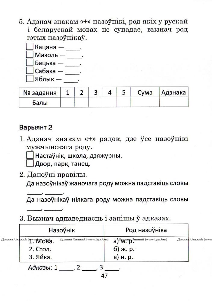 ◆ У канцы заданняў для кожнага варыянта прадстаўлена табліца для запісу балаў.