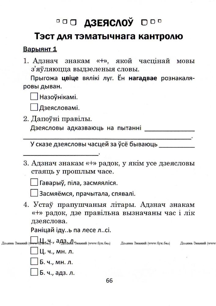 ◆ Вызначана, да якога віду кантролю адносіцца тэст (тэматычны па раздзелах праграмы, па тэмах у межах гэтых раздзелаў і выніковы).