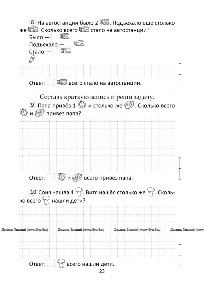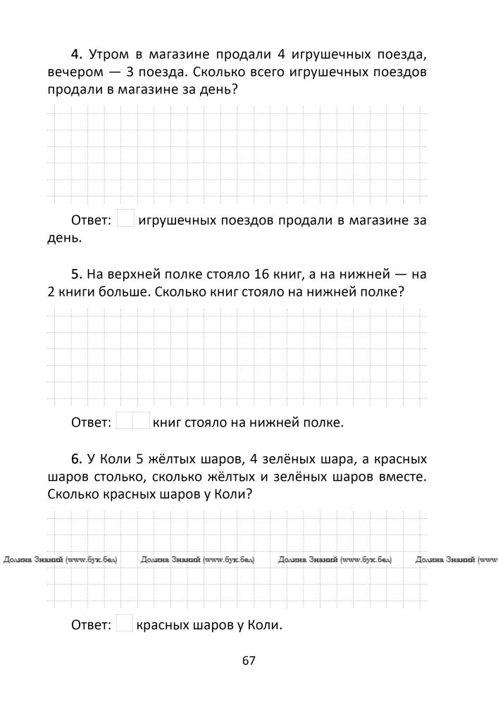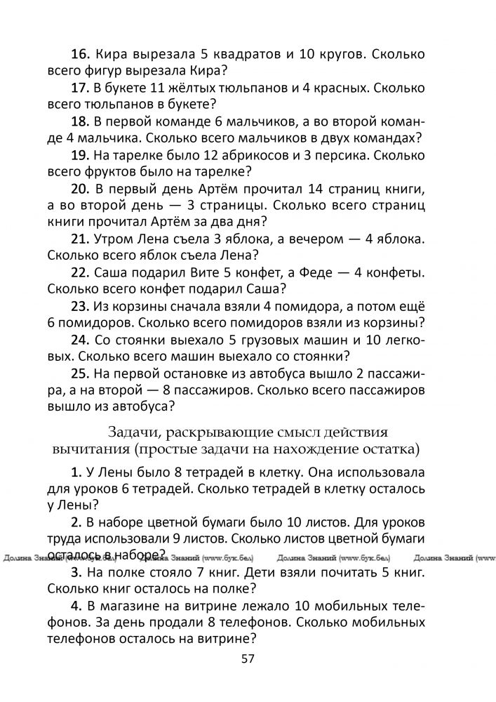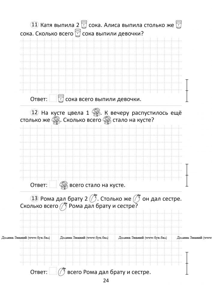 Пособие представляет собой тренажер для формирования и закрепления навыков решения простых задач в 1-м классе. В издание вошли простые задачи по всем основным темам курса математики за первый год обучения, представлено 15 задач каждого типа. Материал будет способствовать повышению эффективности обучения, выработке навыка решения простых задач, развивать у учащихся умение анализировать и решать текстовые задачи разных типов в соответствии с учебной программой.