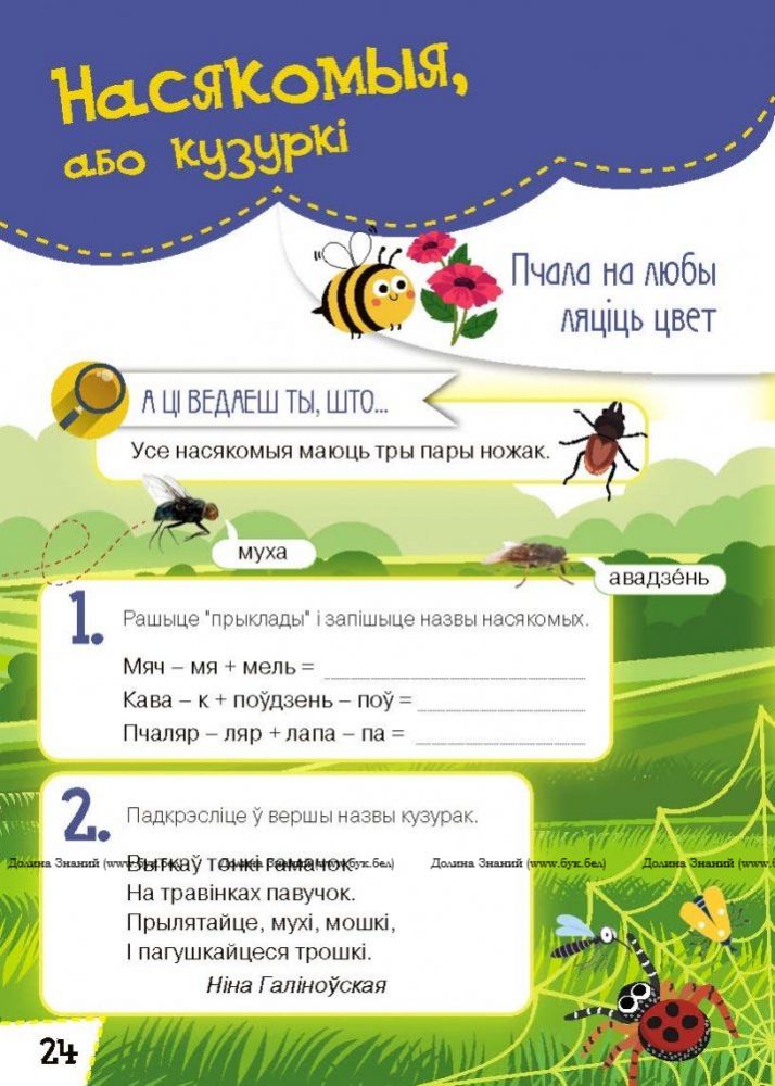 Адна з асноўных мэт гэтай добра ілюстраванай кнігі-атласа – пазнаёміць юнага чытача з дзівосным жывёльным светам Беларусі, паказаць яго багацце і разнастайнасць. На яркіх каляровых фотаздымках прадстаўлены выявы звяроў, птушак, паўзуноў, кузурак, рыб, некаторых відаў амфібій, якія насяляюць нашыя лясы, лугі, балоты, рэкі і азёры. Кароткія, але ёмістыя тэксты з рубрыкі “А ці ведаеш ты, што…”, з аднаго боку, пашыраюць і дэталізуюць школьныя веды дзіцяці з жыцця жывёл, з другога боку, накіраваны на абуджэнне яго пазнавальнай цікавасці, вызначэнне патрэбы з апорай на атрыманыя з тэкстаў звесткі задаваць дадатковыя пытанні, усталёўваць адпаведныя прычынна-выніковыя сувязі. Разнапланавыя гульнёвыя заданні, што прапануюцца на старонках кнігі і тэматычна звязаныя з яе ілюстрацыйным матэрыялам, дапамагаюць дзіцяці асэнсавана ўспрыняць і засвоіць новую інфармацыю, актывізуюць яго думку, развіваюць памяць, увагу, лагічнае і творчае мысленне. Шматлікія практыкаванні на аснове працы з фразеалагізмамі (у тым ліку з устойлівымі выразамі рубрыкі “Калі так кажуць?”), трапнымі прыказкамі і народнымі прыкметамі, загадкамі і асобнымі словамі арыентаваны на актывізацыю слоўніка дзіцяці, развіццё яго маўленчай культуры, далучэнне да духоўнай спадчыны беларускага народа. На ўсе заданні ў канцы кнігі прапануюцца адказы і тлумачэнні.